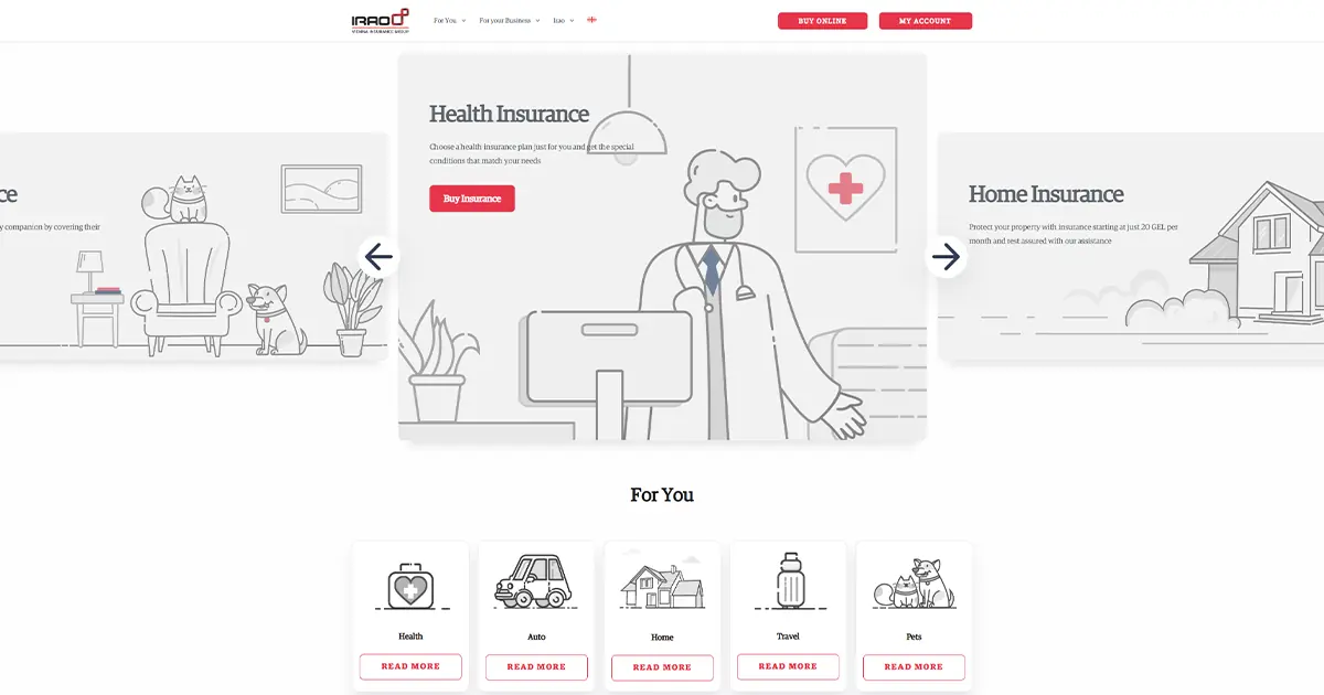 IRAO is a Georgian insurance company that required a full platform migration with a website built from scratch based on Figma mockups. The site needed to be multilingual, fast, and preserve all search rankings during the transition from the old site.
