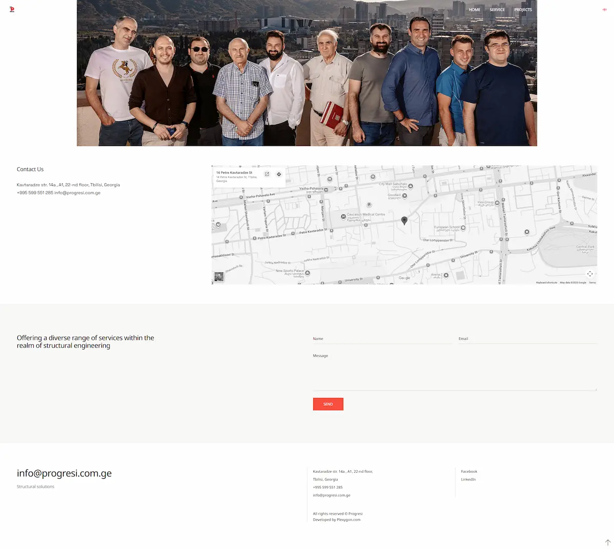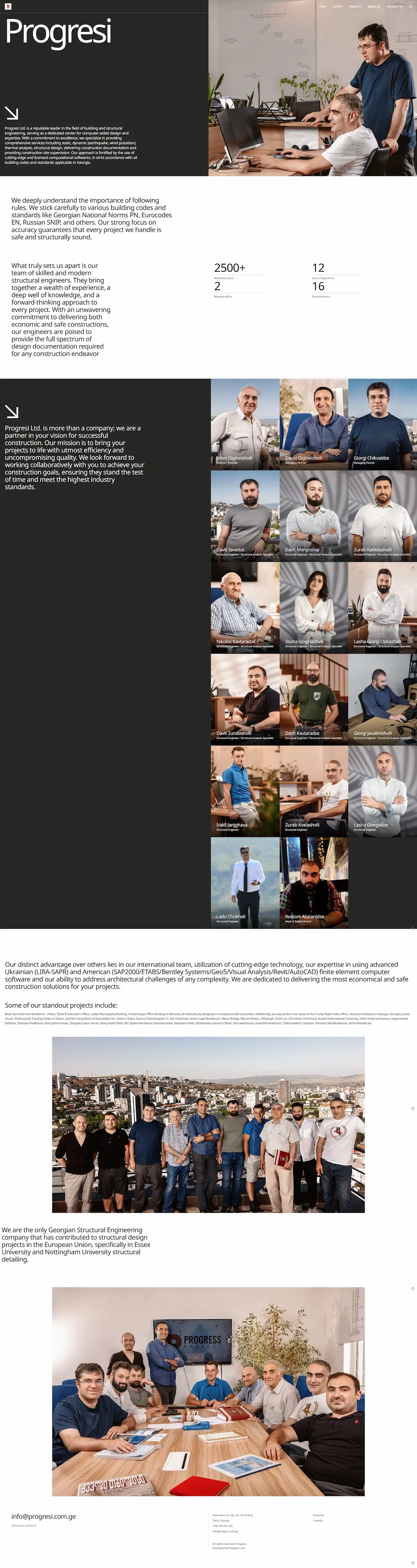 Outcome : A professional corporate website that positions Progresi as a leader in structural engineering in Georgia — with a well-organized service catalog and an extensive project portfolio showcasing decades of experience.