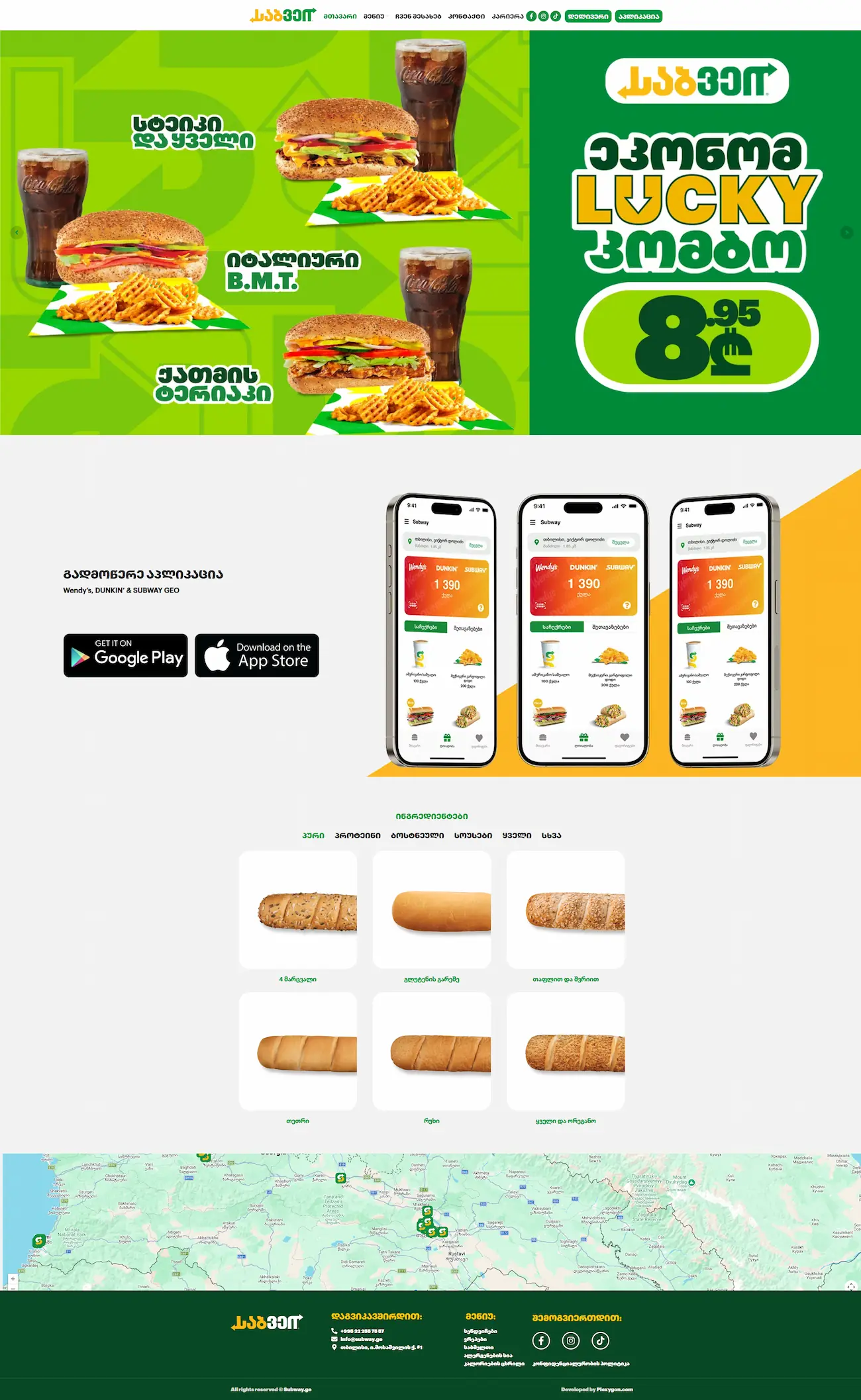 Outcome : A clean, bilingual catalog website representing the Subway brand in the Georgian market — featuring the full menu, company information, and functional sections for job seekers and partners.